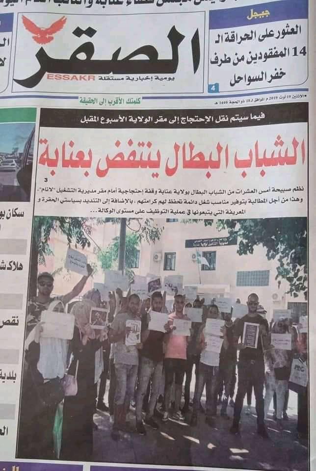 اختار عدد من الشباب البطال يوم الأحد 18 أوت كموعد من أجل “انتفاضة” الشباب البطال على ما يسمونه بـ”الحقرة” المتبعة من قبل القائمين على وكالة التشغيل، ففي لقاء للصريح مع بعض الشباب البطال ببرحال أكدوا لنا أن الوكالة لا تقدم أي جديد فيما يخص عروض العمل، مما جعل الكثير منهم لا يعتمد عليها في البحث عن مهنة بخبراتهم وشهاداتهم بعدما لم يجدوا فيها عروض عمل أو حتى توجيهات أو إجابات للعديد من الاستفسارات حول وضعيتهم.